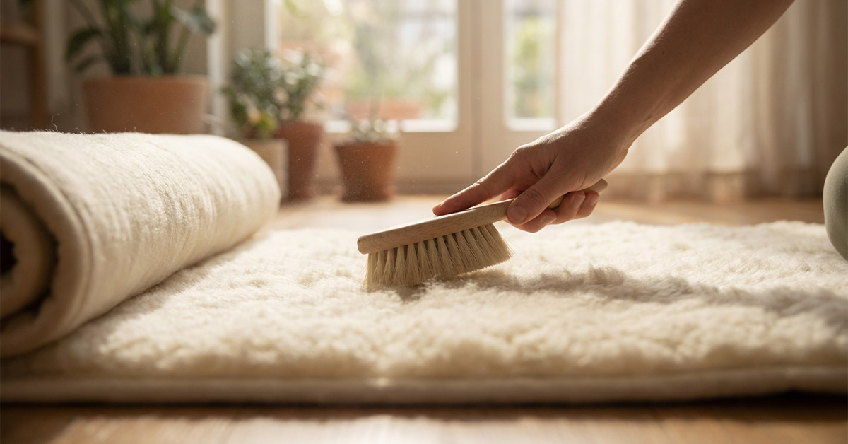 - Schonende Reinigung bei Bedarf: Bei stärkerer Verschmutzung oder Flecken kannst du deine Schurwollmatte vorsichtig mit lauwarmem Wasser (unter 30 °C) und einem milden, pH-neutralen Wollwaschmittel per Hand reinigen. Wringe die Matte nicht aus, sondern drücke das Wasser sanft heraus und lasse sie flach auf Handtüchern trocknen. Detailliertere Pflegehinweise für Schurwollmatten findest du in unserem Ratgeber.